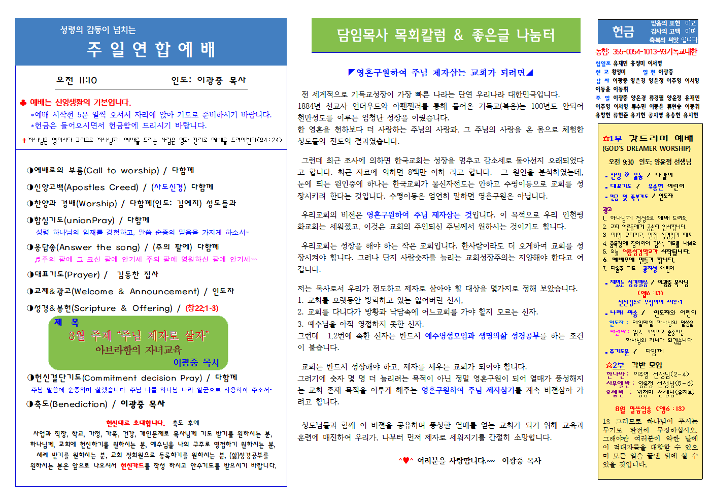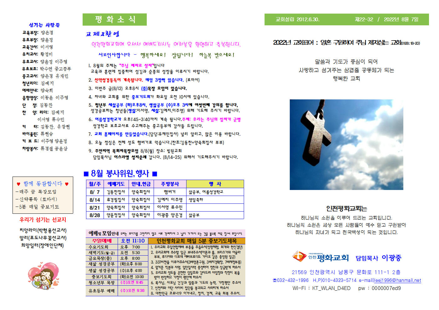 인천평화교회 제22-32 / 2022년 8월 7일 주보