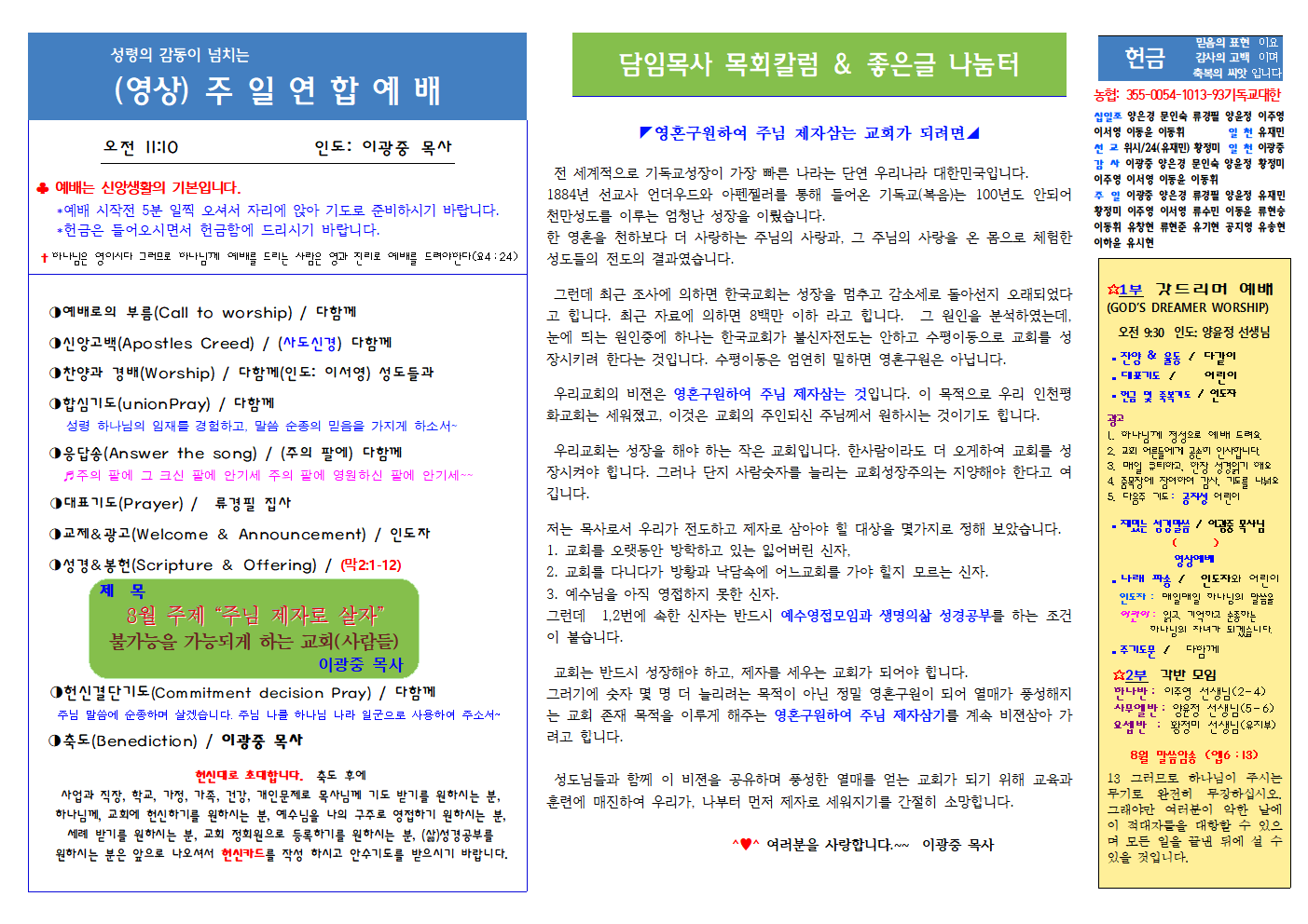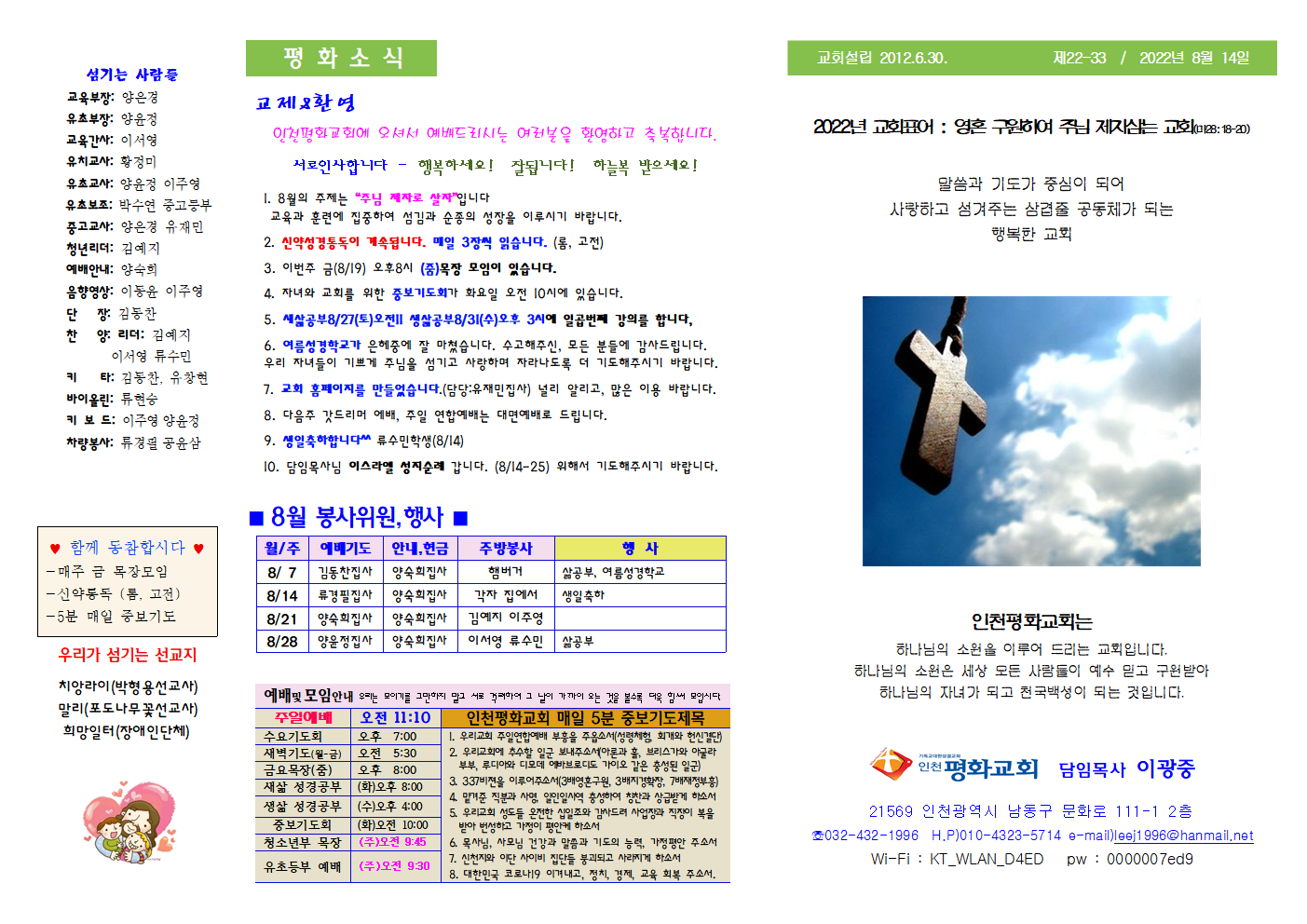 인천평화교회 제22-33 / 2022년 8월 14일 주보