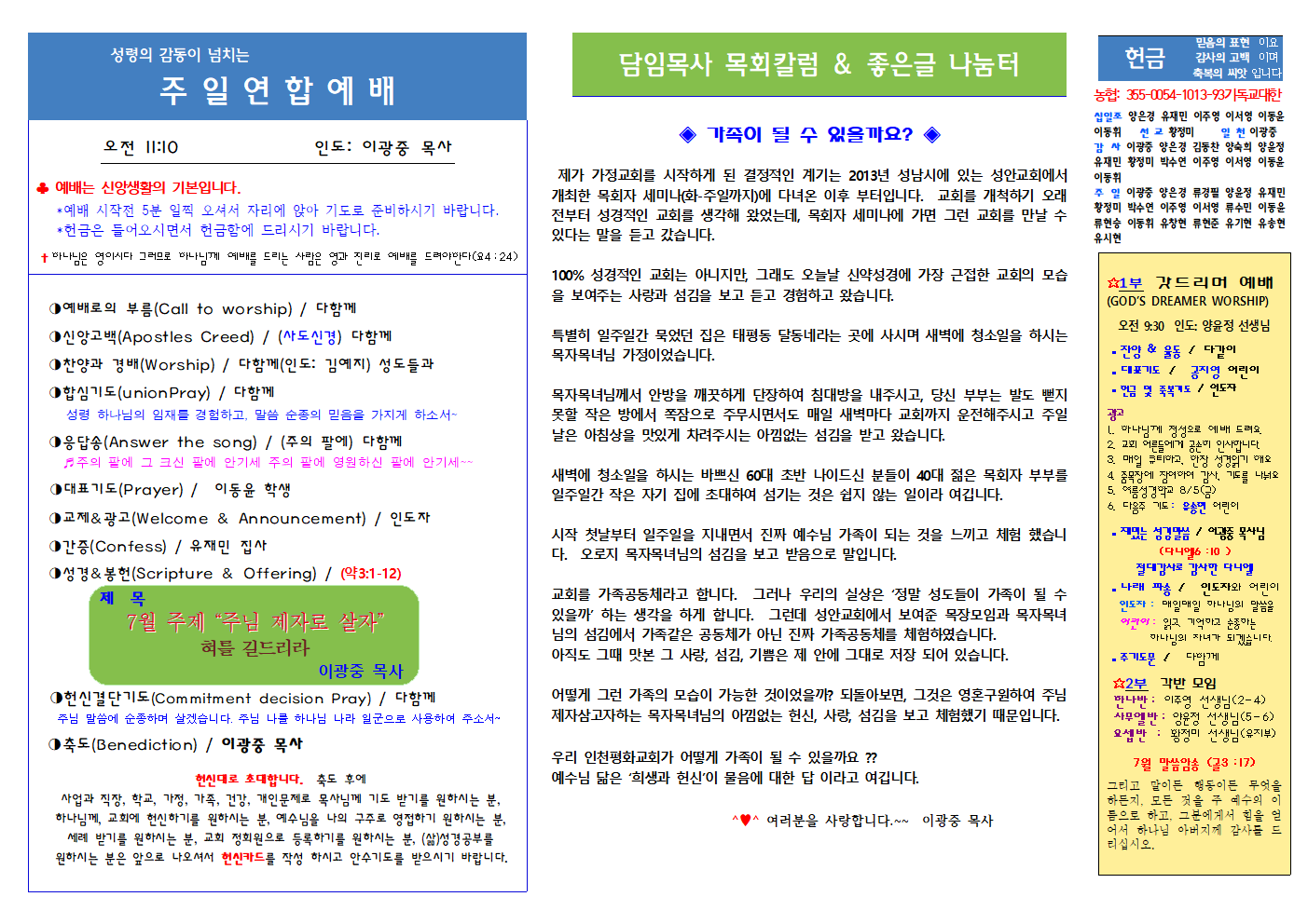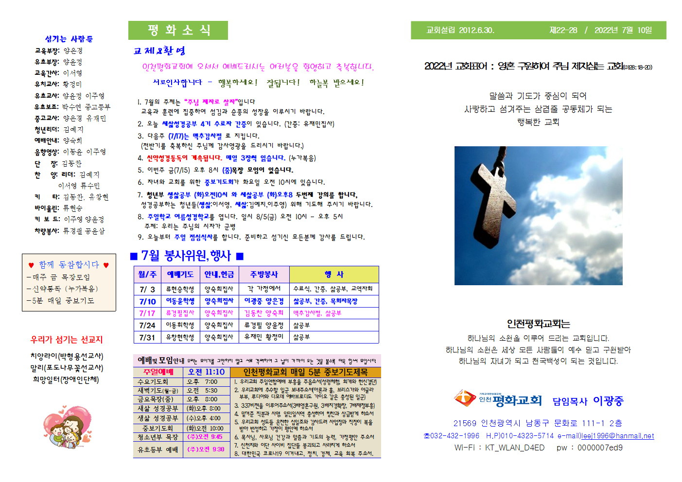 인천평화교회 제22-28 / 2022년 7월 10일 주보
