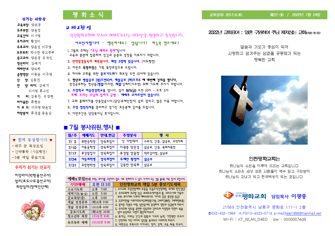 인천평화교회 제22-30 / 2022년 7월 24일 주보
