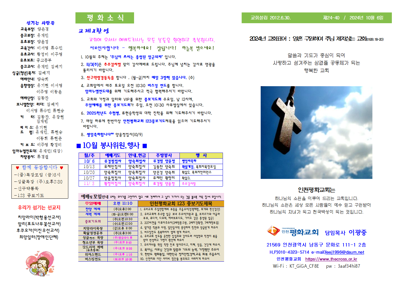 인천평화교회 제24-40 / 2024년 10월 06일 주보