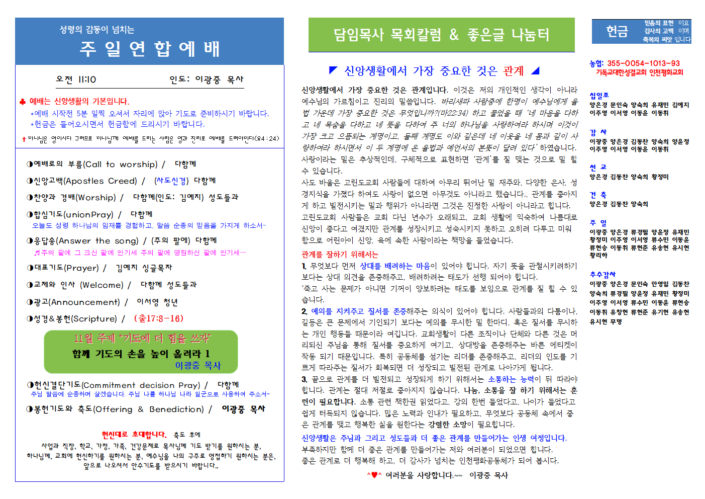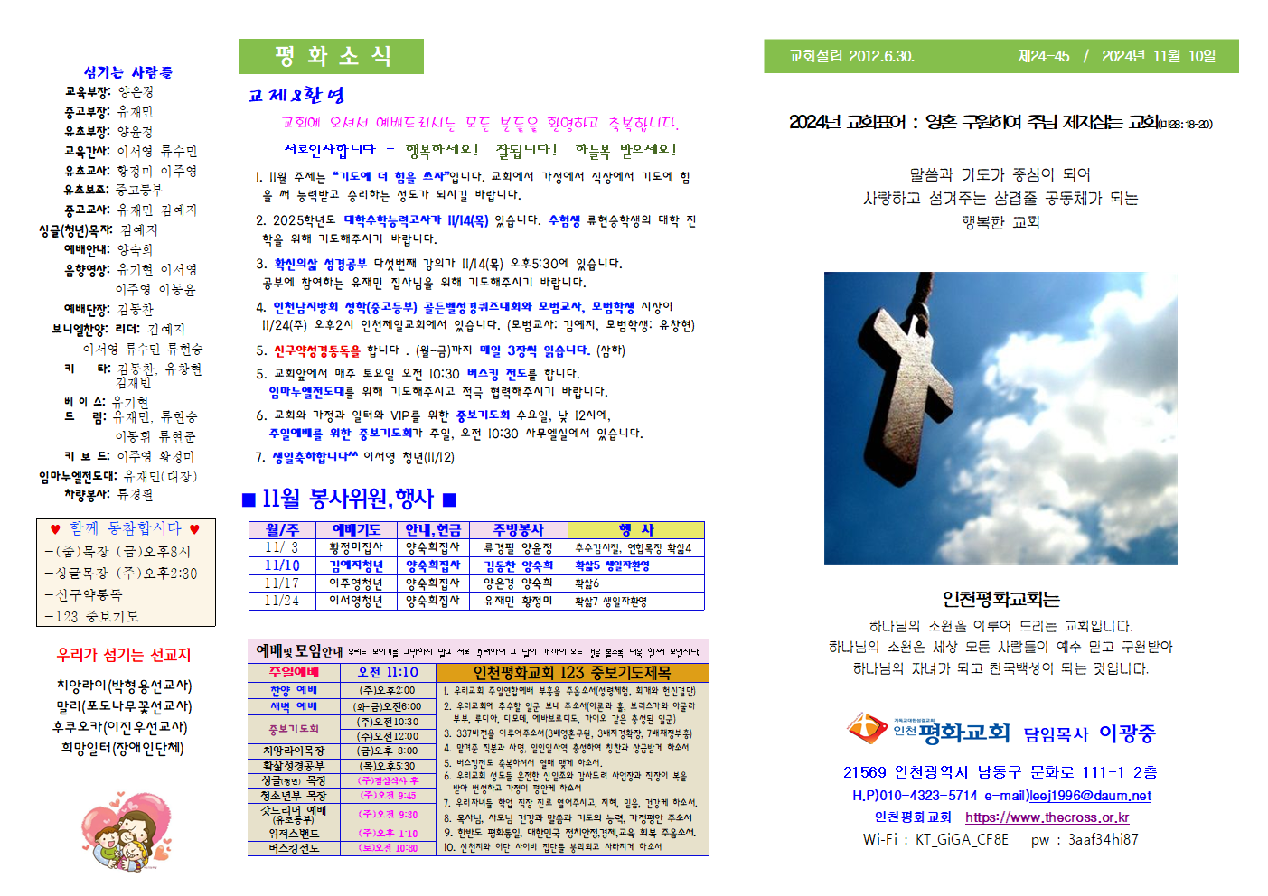 인천평화교회 제24-45 / 2024년 11월 10일 주보