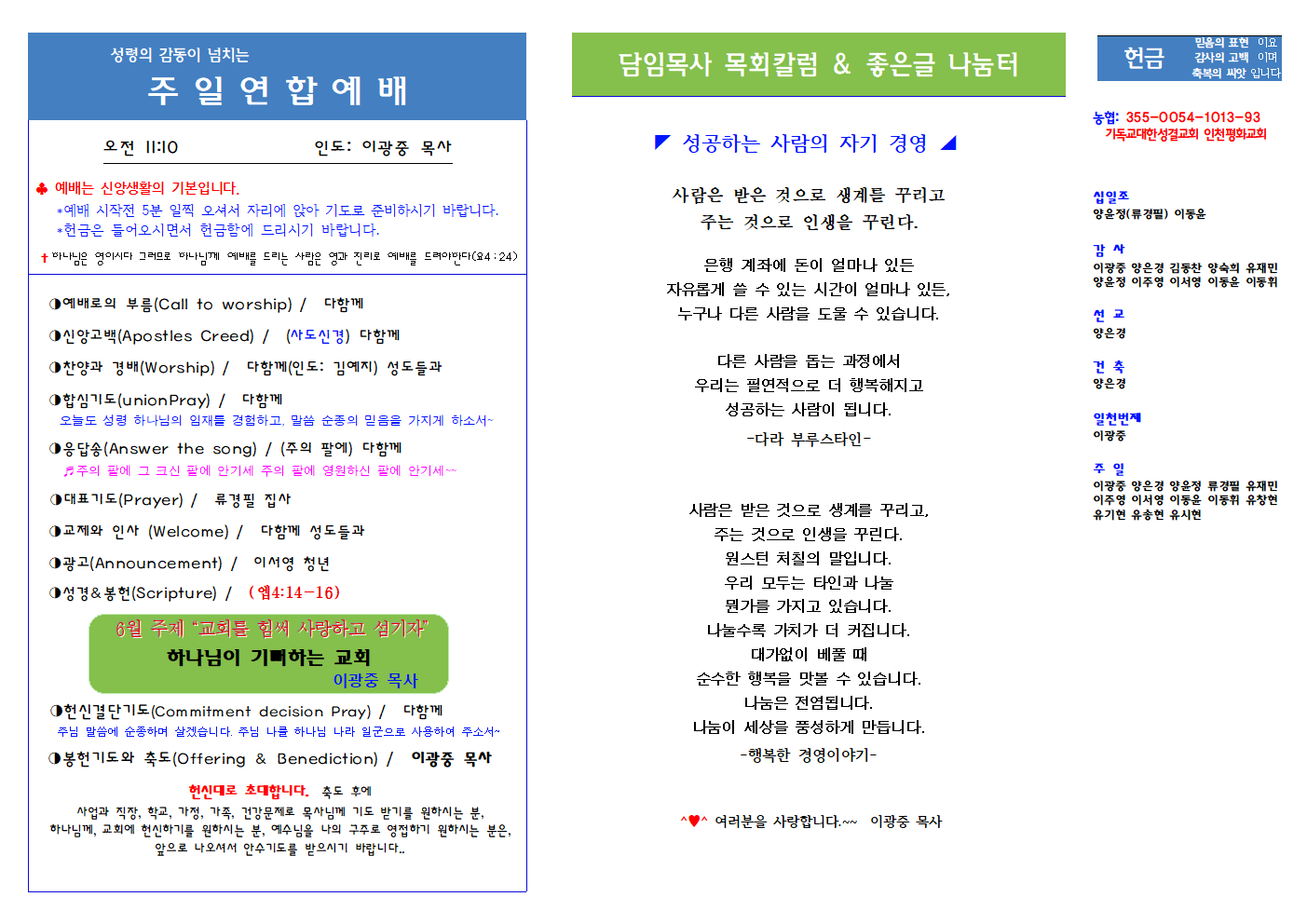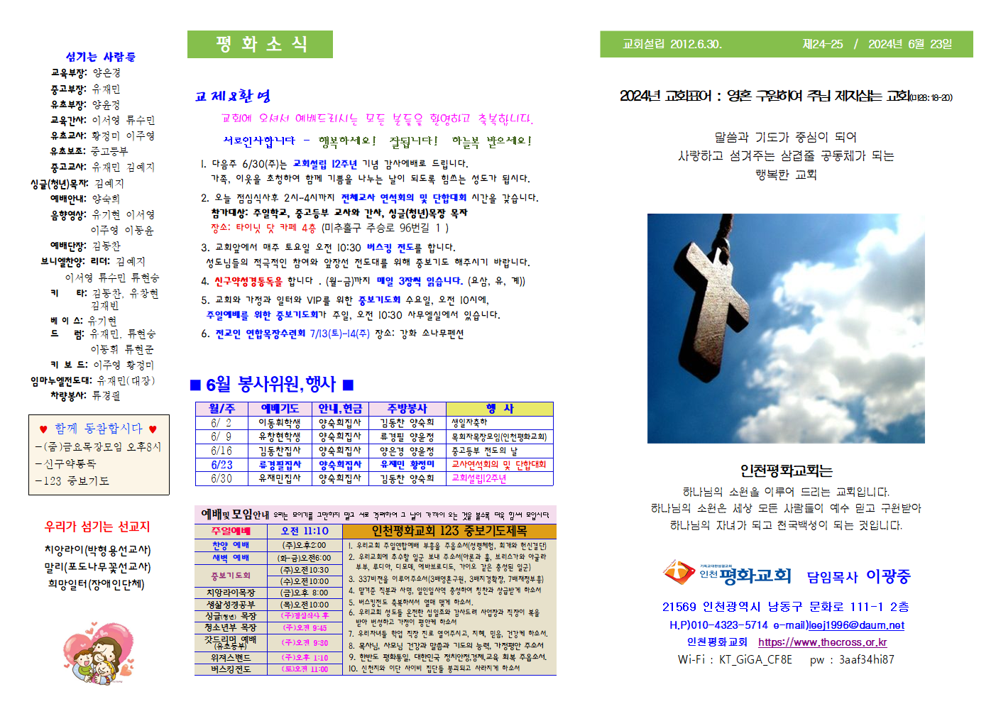 인천평화교회 제24-25 / 2024년 6월 23일 주보