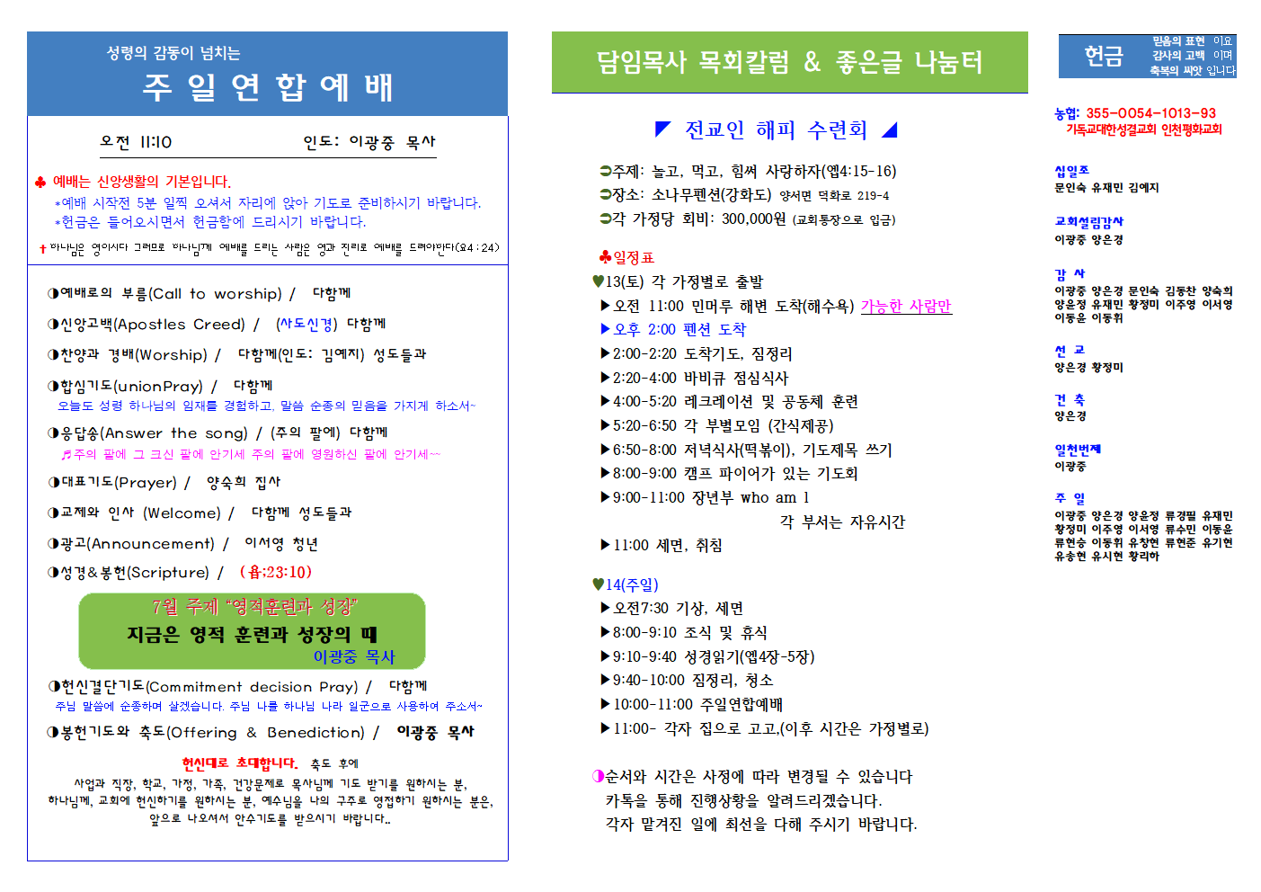 인천평화교회 제24-27 / 2024년 7월 7일 주보