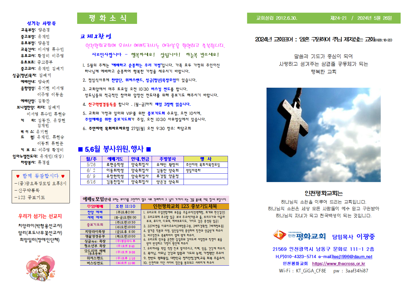 인천평화교회 제24-21 / 2024년 5월 26일 주보