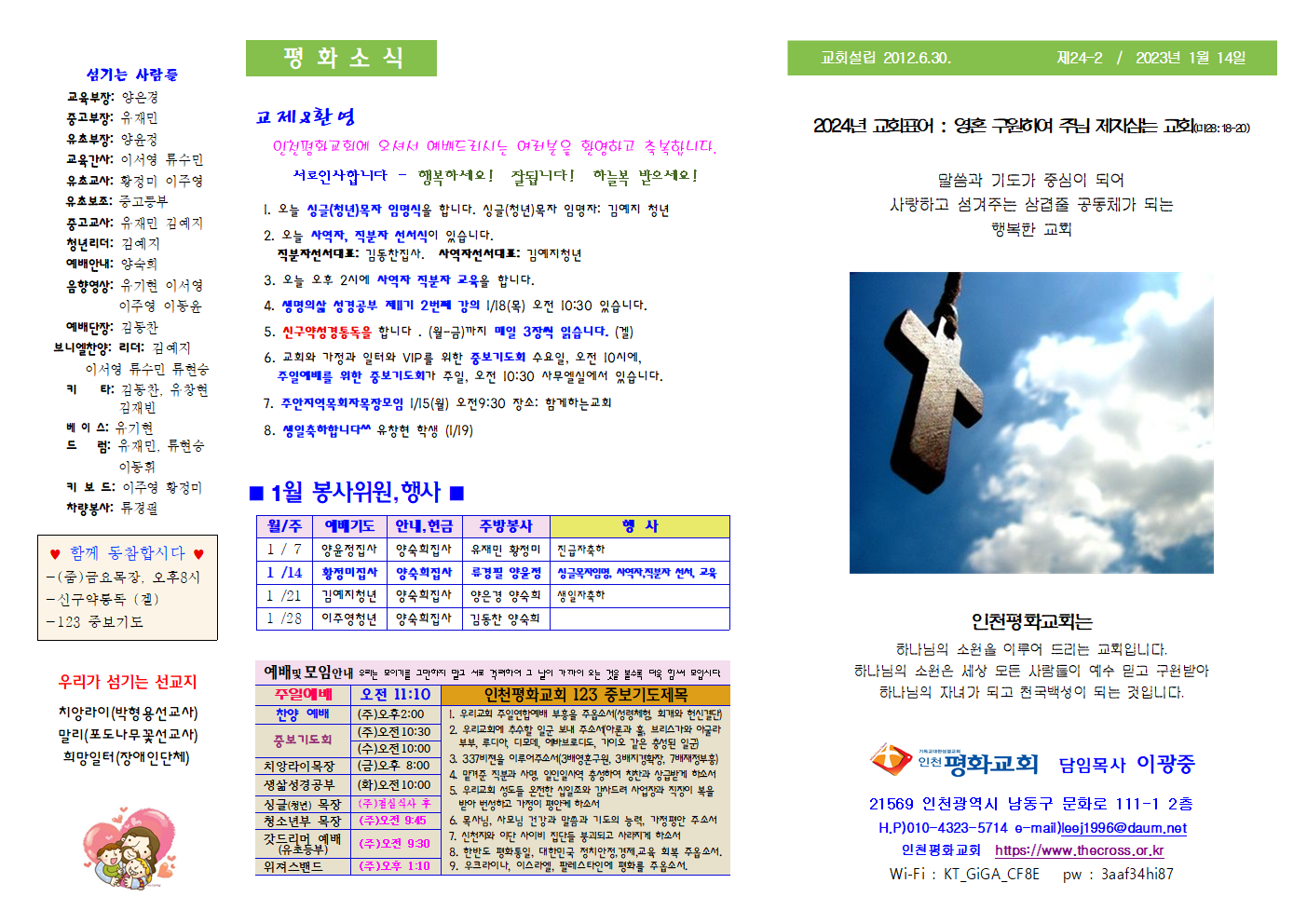 인천평화교회 제24-2 / 2024년 1월 14일 주보