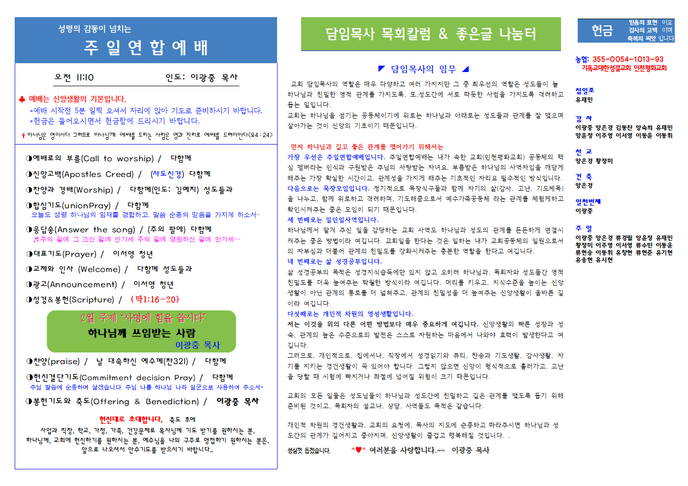 인천평화교회 제24-5 / 2024년 2월 4일 주보