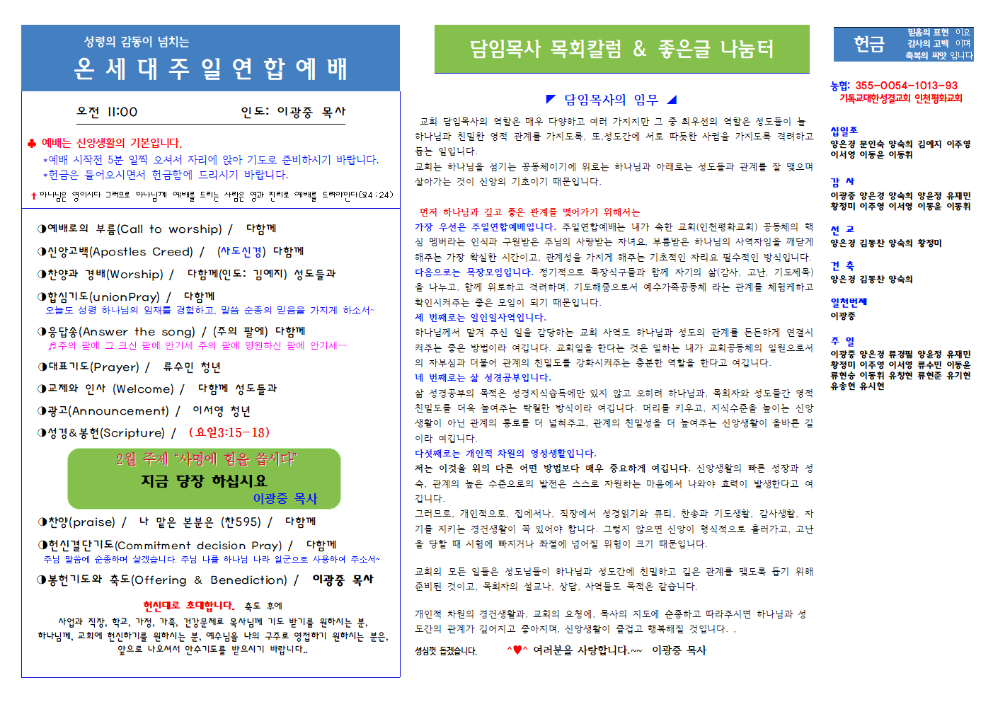인천평화교회 제24-6 / 2024년 2월 11일 주보