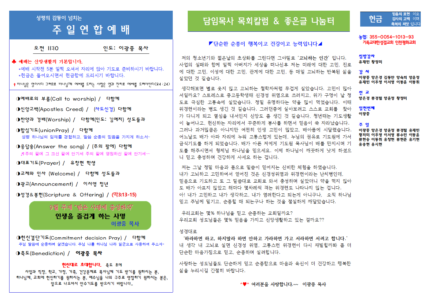 인천평화교회 제23-36 / 2023년 9월 3일 주보
