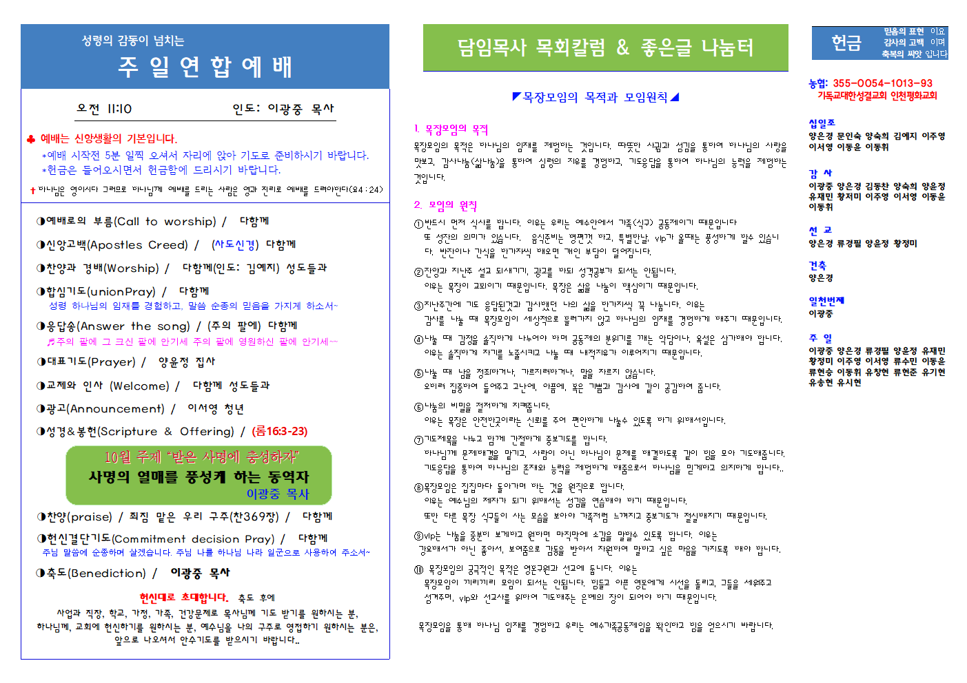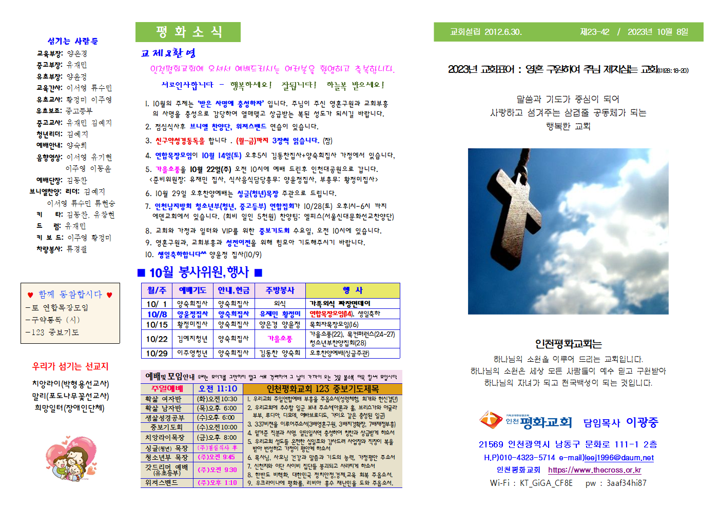인천평화교회 제23-41 / 2023년 10월 08일 주보