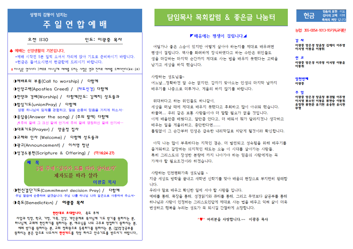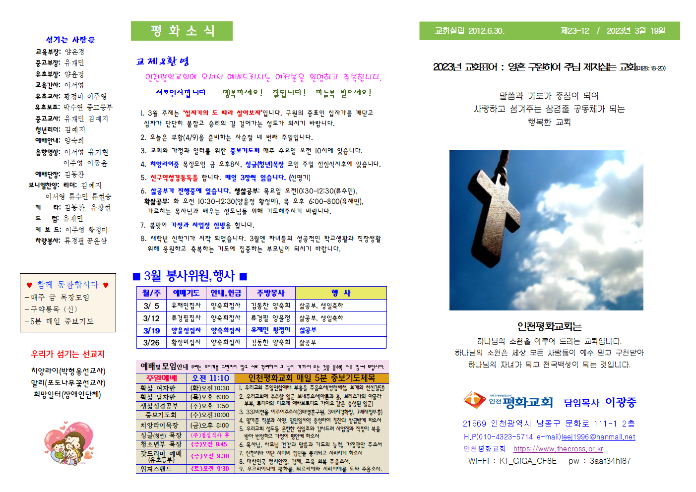 인천평화교회 제23-12 / 2023년 3월 19일 주보