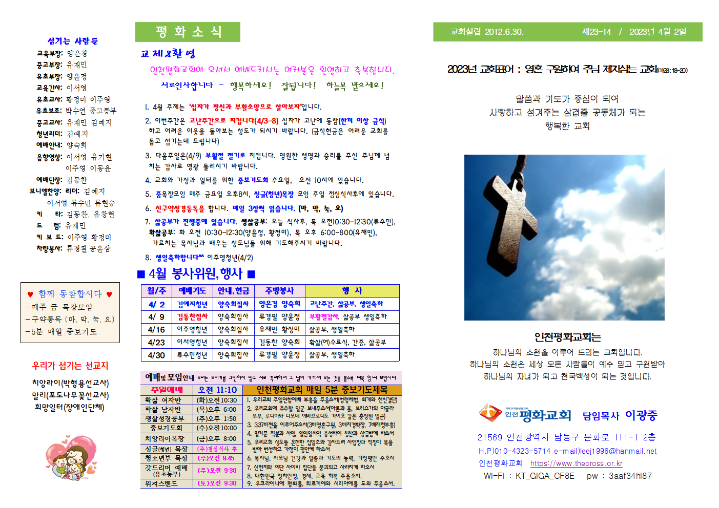 인천평화교회 제23-14 / 2023년 4월 2일 주보