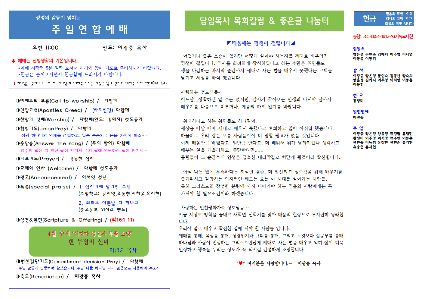 인천평화교회 제23-15 / 2023년 4월 9일 주보