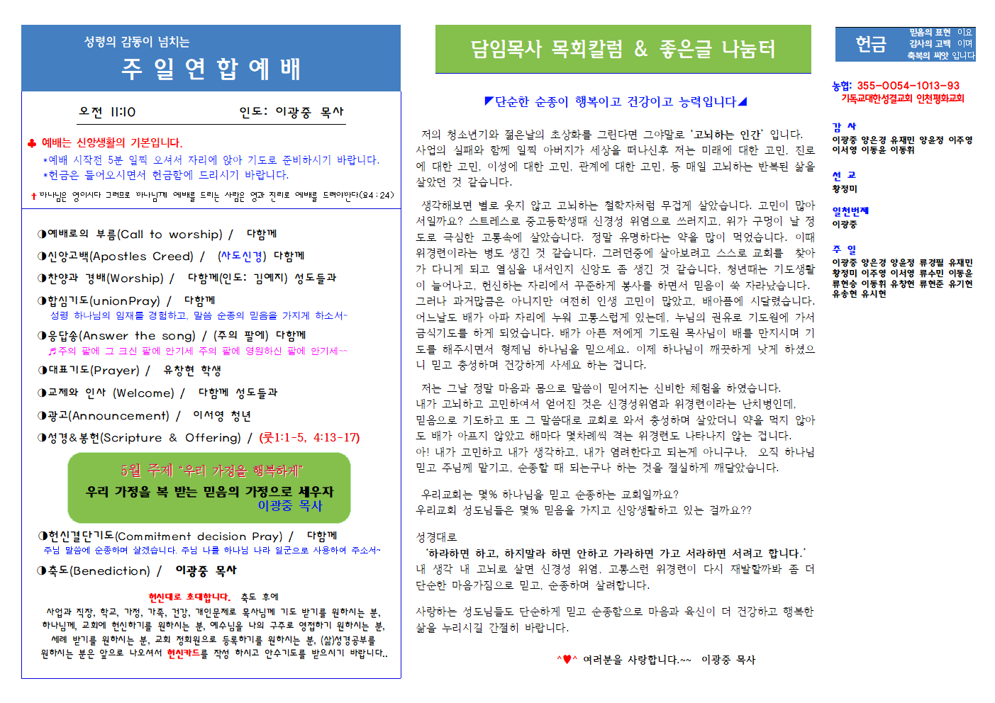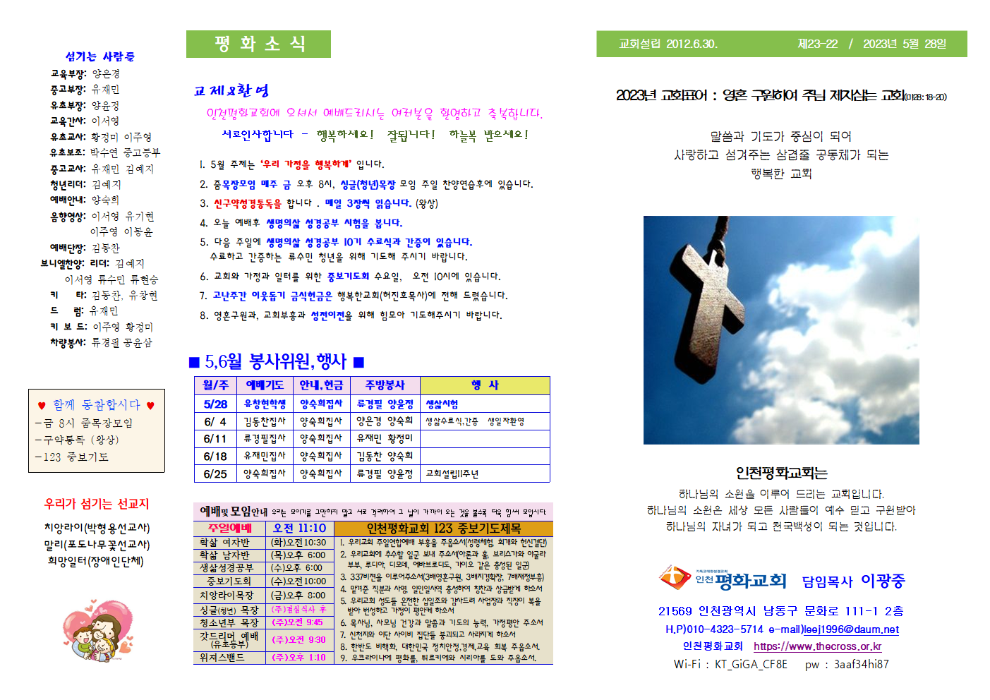 인천평화교회 제23-22 / 2023년 5월 28일 주보