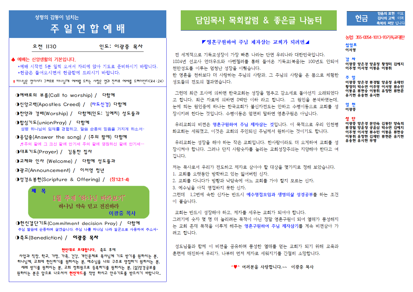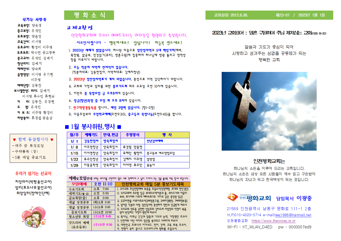 인천평화교회 제23-01 / 2023년 1월 1일 주보