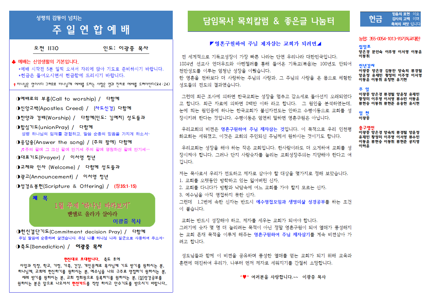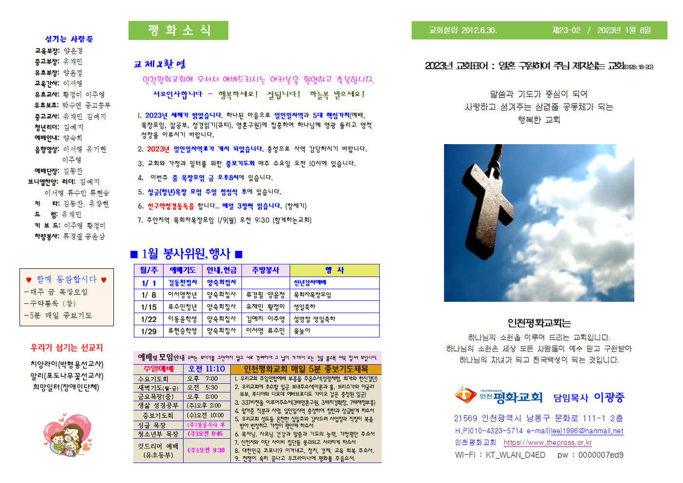 인천평화교회 제23-02 / 2023년 1월 8일 주보