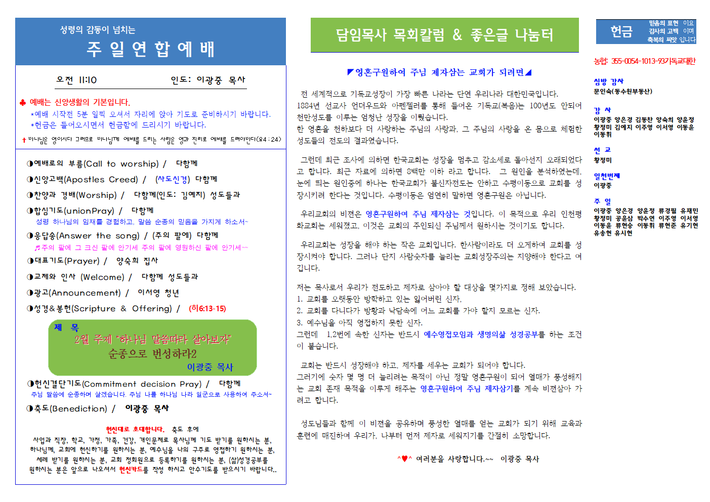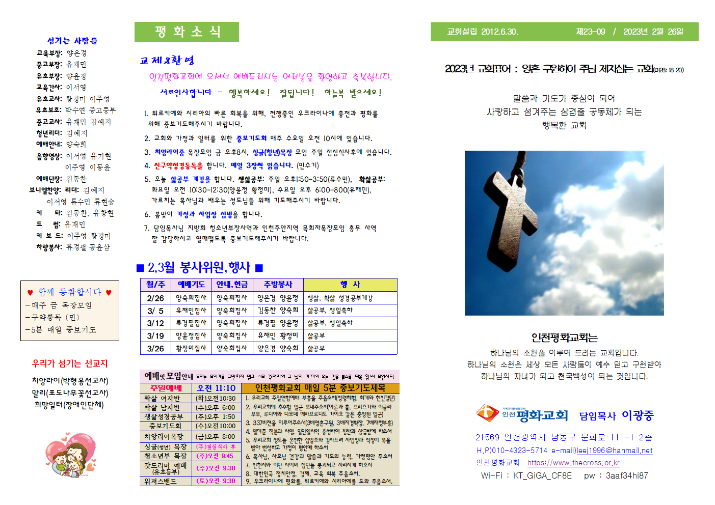 인천평화교회 제23-09 / 2023년 2월 26일 주보