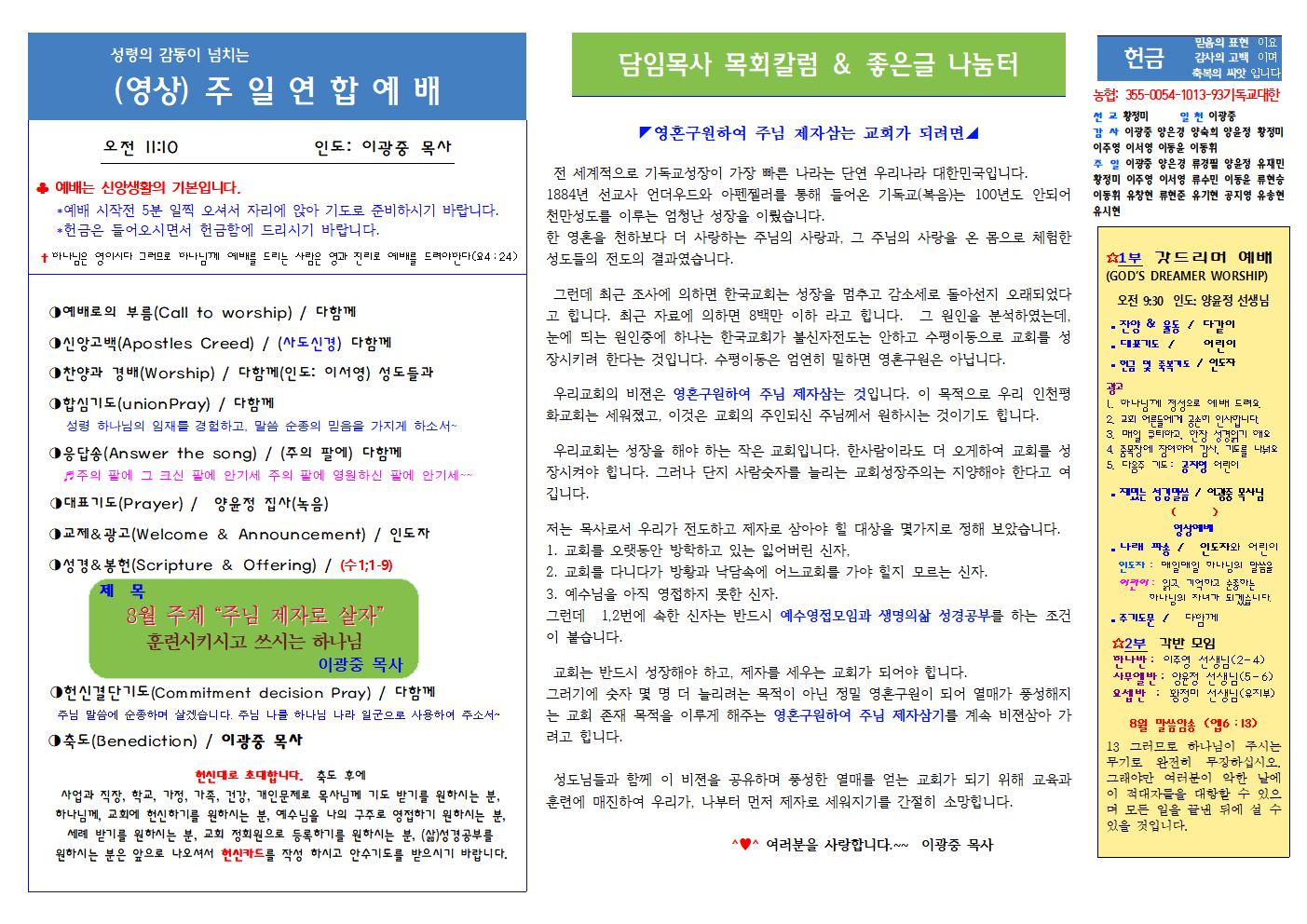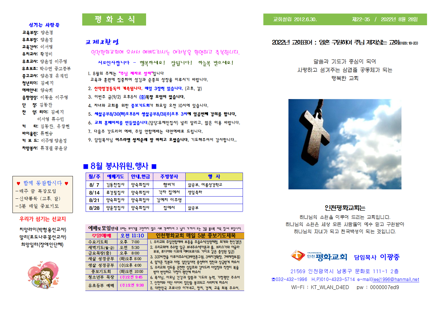 인천평화교회 제22-35 / 2022년 8월 28일 주보