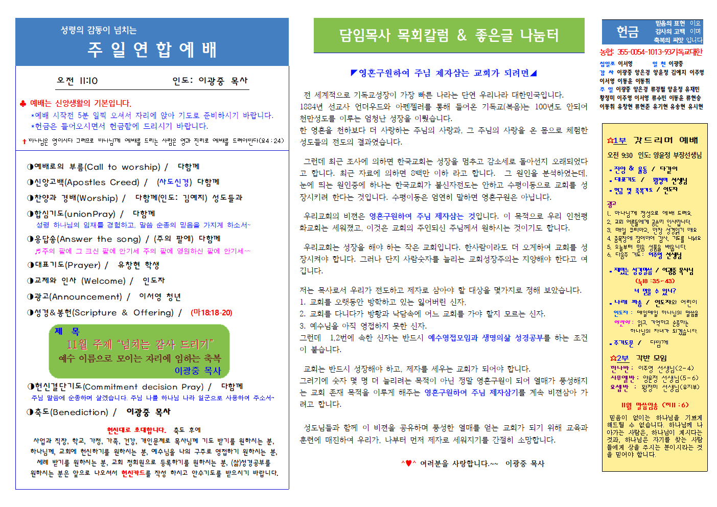 인천평화교회 제22-45 / 2022년 11월 06일 주보