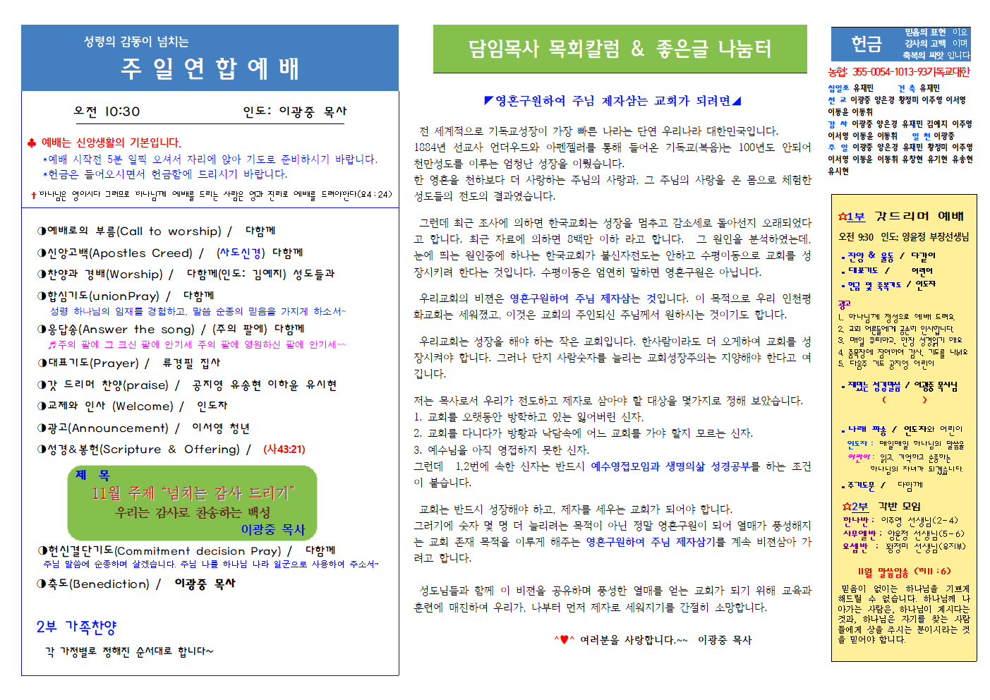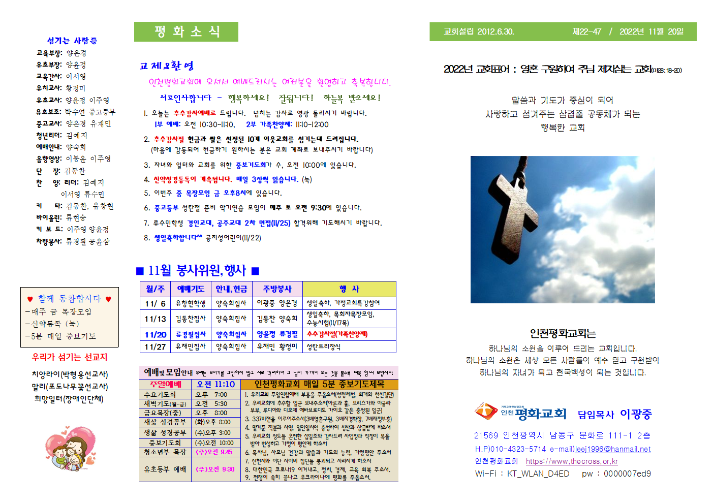 인천평화교회 제22-47 / 2022년 11월 20일 주보