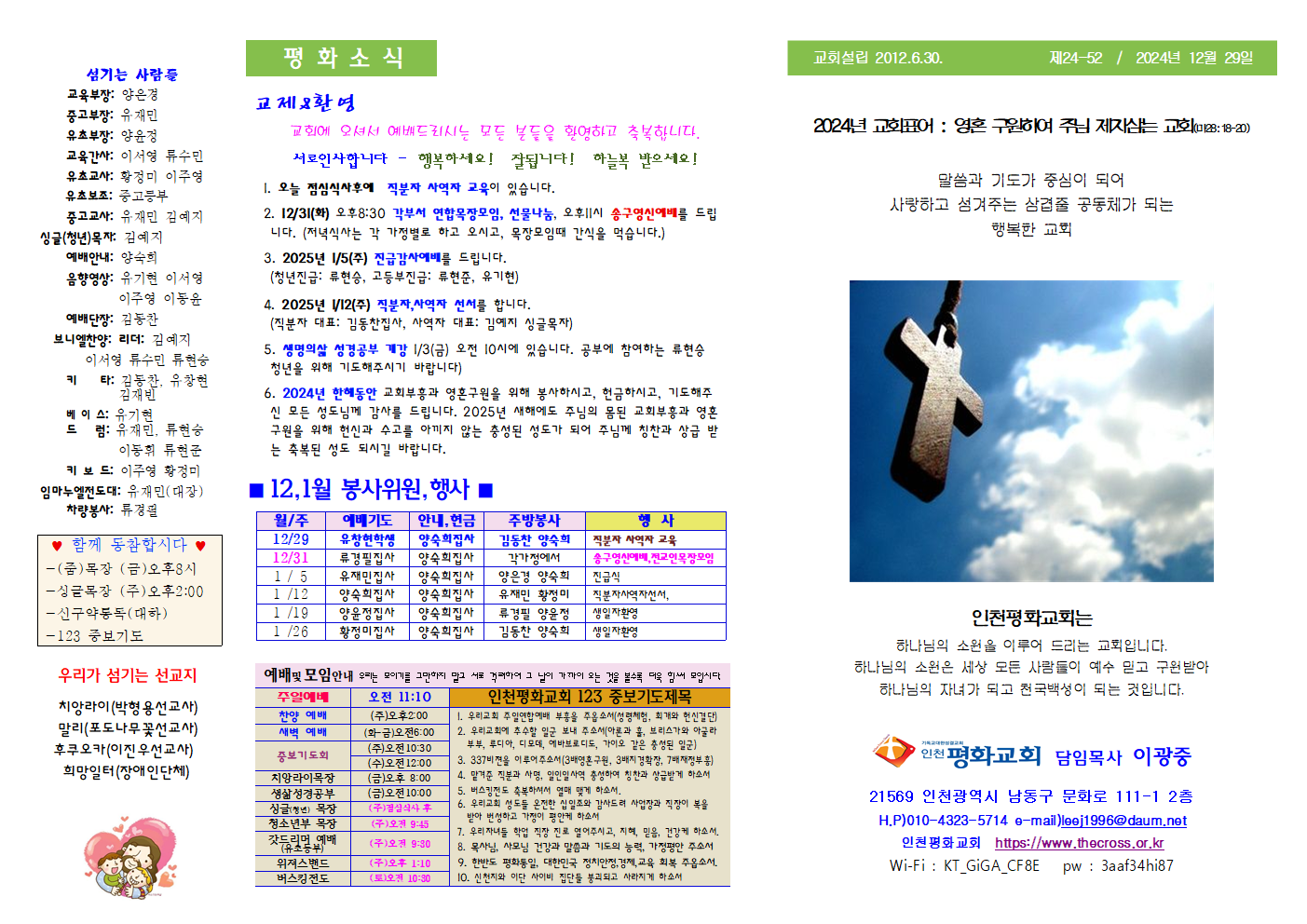 인천평화교회 제24-52 / 2024년 12월 29일 주보