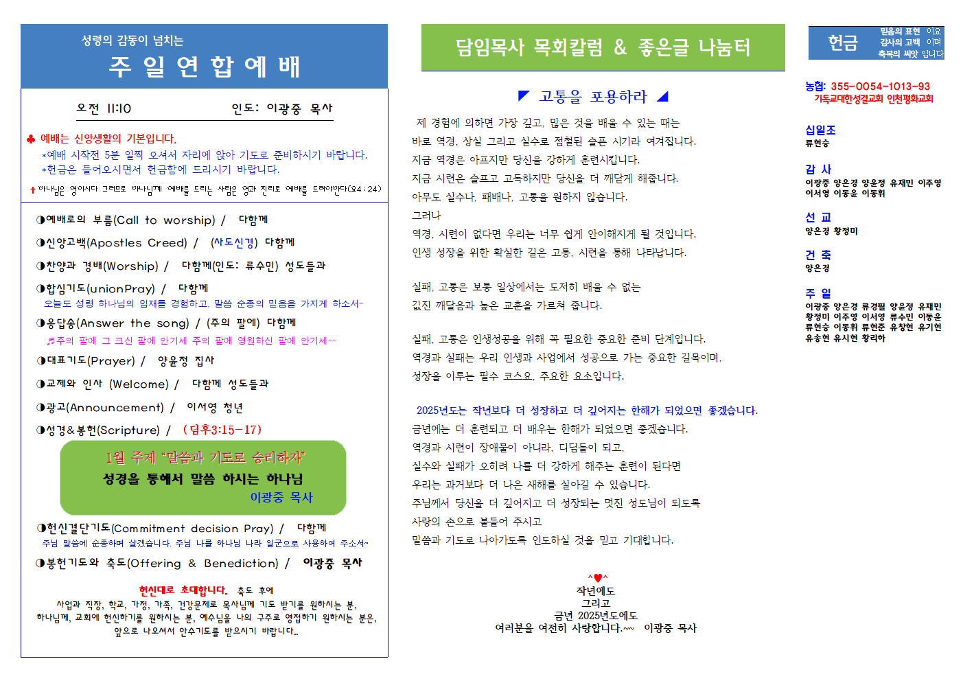 인천평화교회 제25-04 / 2025년 1월 26일 주보