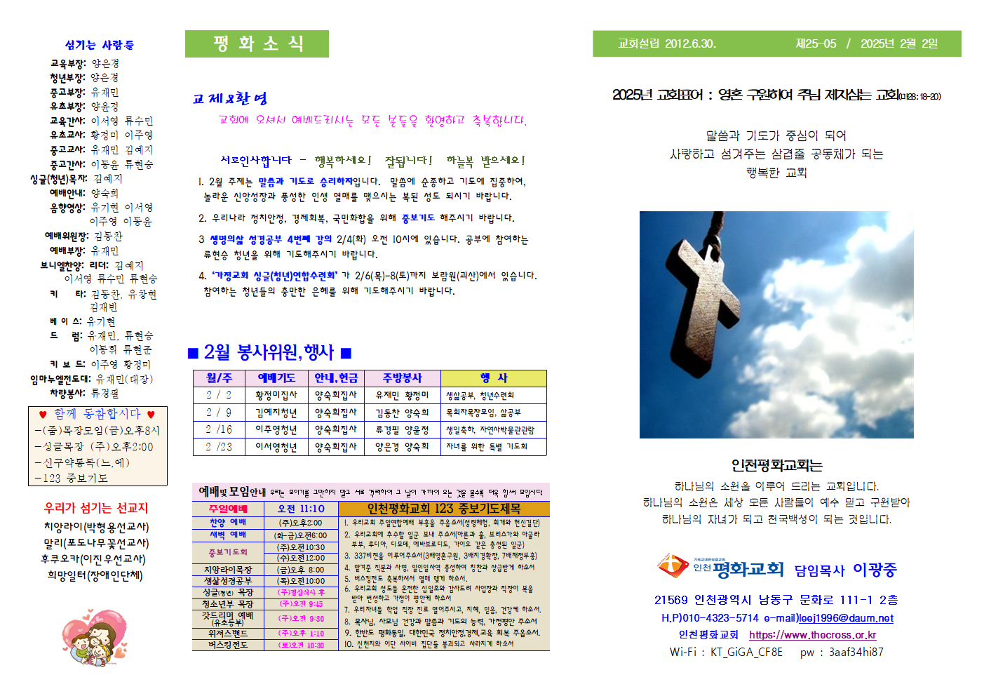 인천평화교회 제25-05 / 2025년 2월 2일 주보