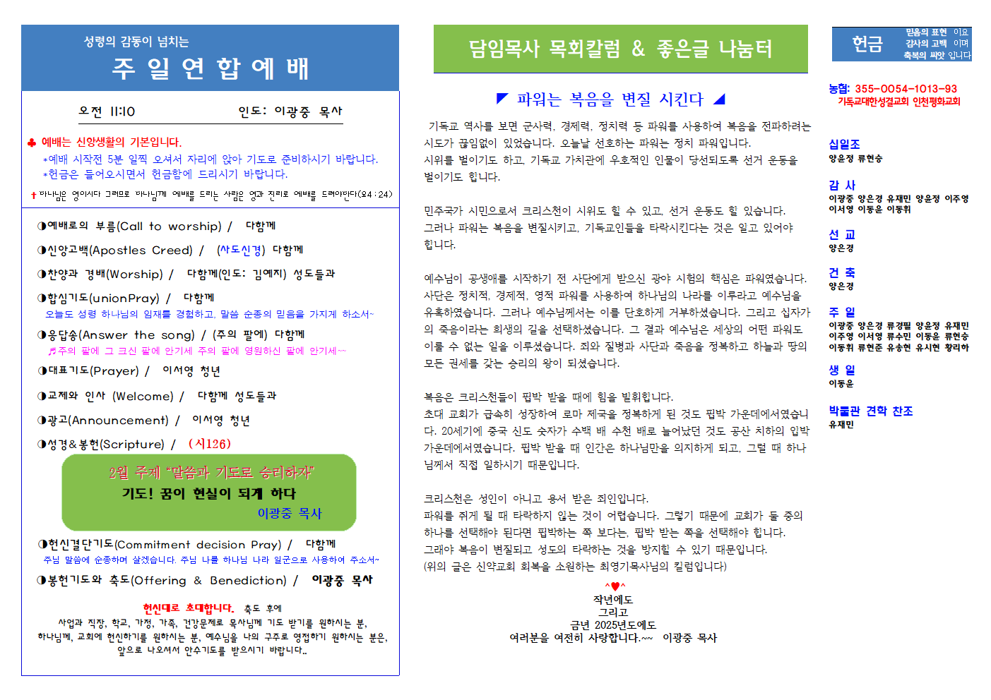인천평화교회 제25-08 / 2025년 2월 23일 주보