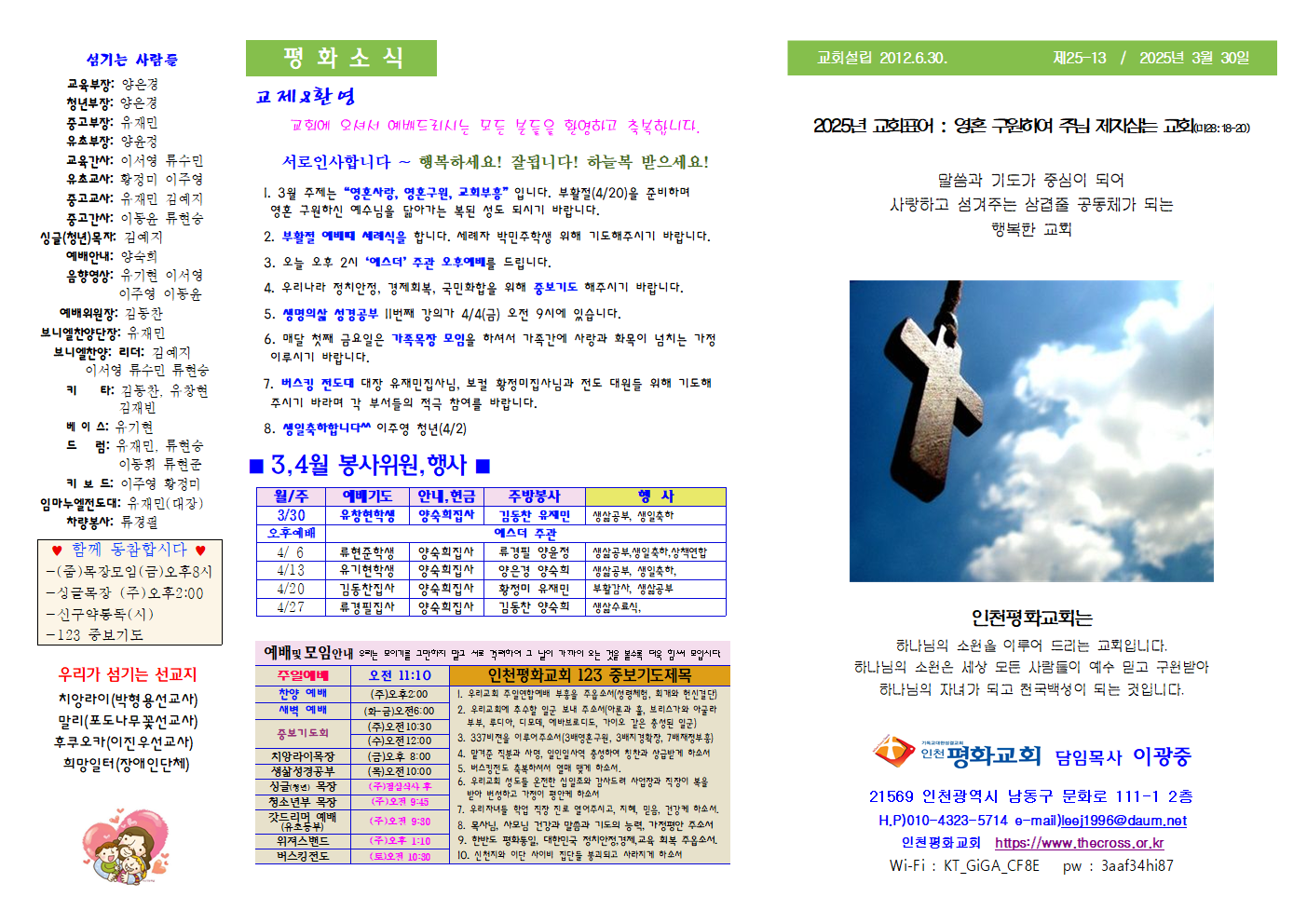인천평화교회 제25-13 / 2025년 3월 30일 주보