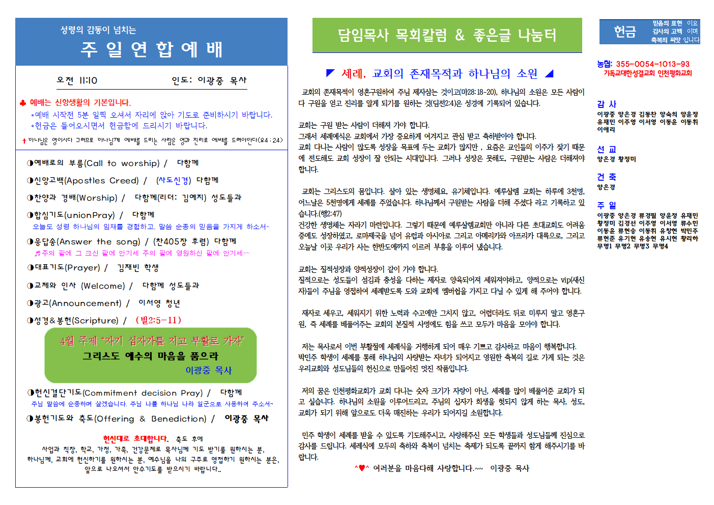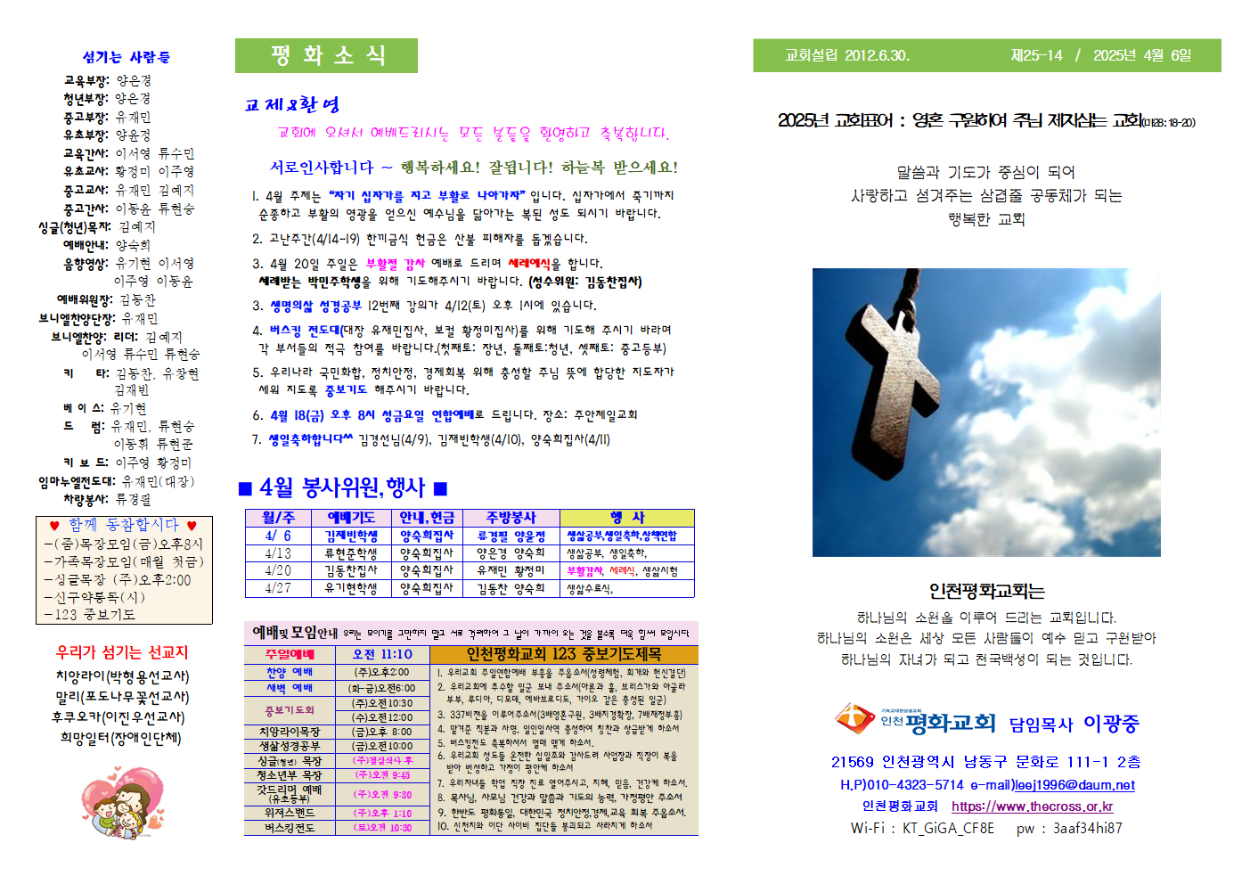 인천평화교회 제25-14 / 2025년 4월 6일 주보
