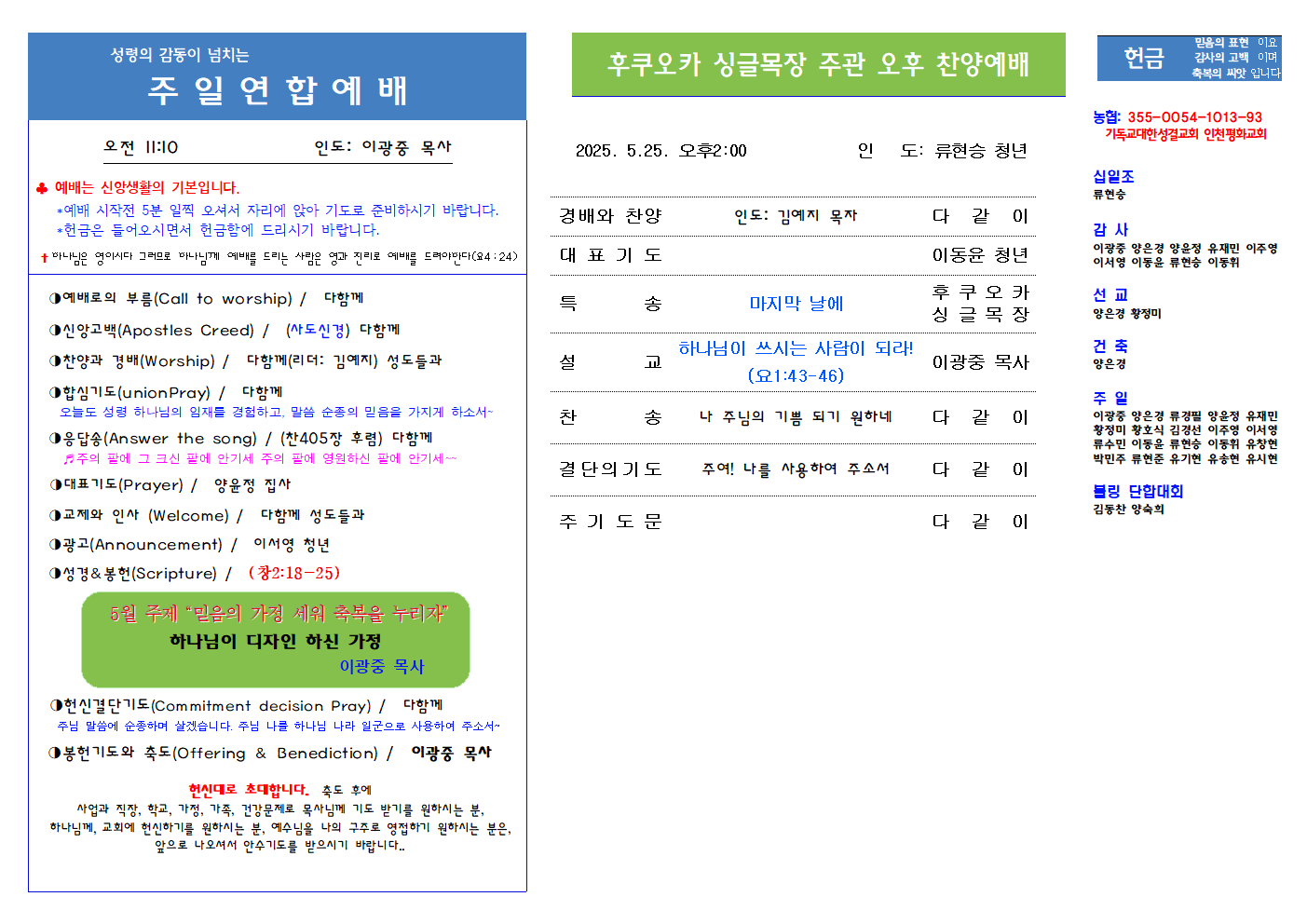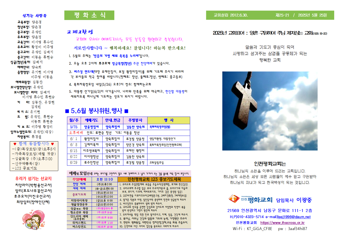 인천평화교회 제25-21 / 2025년 5월 25일 주보