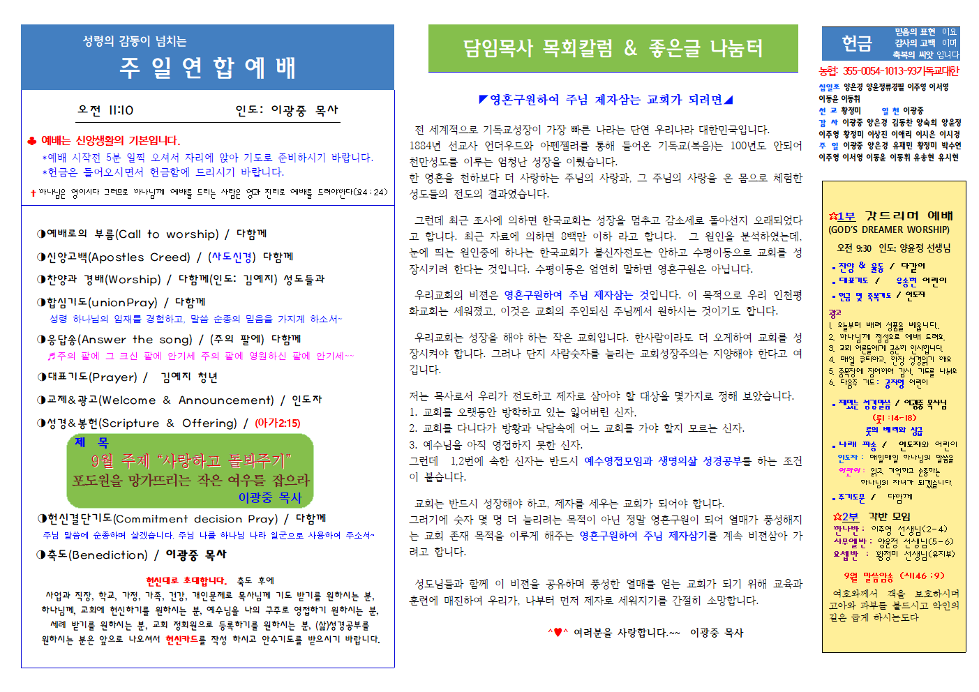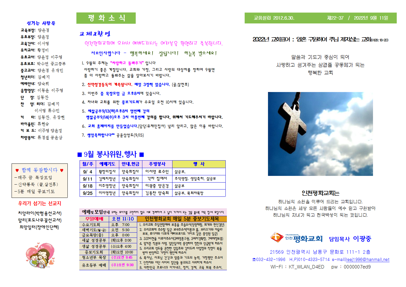 인천평화교회 제22-37 / 2022년 9월 11일 주보