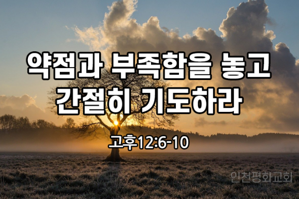 약점과 부족함을 놓고 간절히 기도하라 (고후12:6-10)사도바울에게는 큰 약점이 있었습니다.그것은 그의 육체에 깊이 박혀 있는 가시로 눈병이었습니다.바울은 질병이라는 약점, 육체의 부족함을 놓고 3번번에 걸쳐 작정하고 고쳐주시길 기도했습니다.간절하게 기도를 했는데, 내 은혜라 네게 족하다 하시면서 거절하셨습니다.바울을 평생 괴롭힌 이 가시는 하나님이 특별히 주신 것이었습니다.그러면 왜 하나님께서 목회자요 선교사인 바울에게 이런 질병을 주셨을까요? 1. 겸손한자가 되라고 주셨습니다.누구에게나 약점, 단점, 부족한 면이 있습...