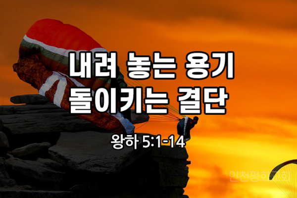 지금 내려 놓는 용기, 돌이키는 결단이 필요합니다 (왕하5:1-14)오늘 여러분에게 한사람을 소개하려고 합니다.나아만이라는 사람입니다.나아만은 시리아의 장군, 왕의 총애를 받는 권세자입니다.여러 종들을 거느리는 큰 부자입니다.그런데 문둥병에 걸린 병자입니다.부귀와 영화, 권세와 능력이 얼마나 빛나고 아름답습니까?그런데 사람을 빛나게 해준다는 이 모든 것이 문둥병 하나에 다 가려지고 묻혀 버립니다.문둥병에 걸리면, 신분의 고하를 막론하고 무조건 저주하고, 밖으로 쫓아냈습니다.왕이라 할지라도 격리조치되고, 계급장도, 신분도, 재산도, ...