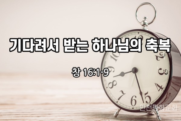 기다려서 받는 하나님의 축복 (창16:1-9)하나님께서 아브라함에게 아들을 주시겠다고 약속을 했습니다.이때 아브람 나이가 75세입니다.아내 사래의 나이는 65세입니다.그런데 주시겠다고 약속한지 10년이 지나도록 임신이 되지 않았습니다.바다의 모래알, 하늘의 별처럼 많은 자손을 주겠다고 했는데 지금 10년이 지났는데 아들 하나도 없습니다.10년동안 기다리다가 오히려 몸은 더 늙어버렸고, 기운은 더 쇠잔해졌습니다. 기다리다가 그냥 늙어 죽으면 가문은 문을 닫는 겁니다.10년 기다려도 소식이 없자,마음이 초조해지고, ...