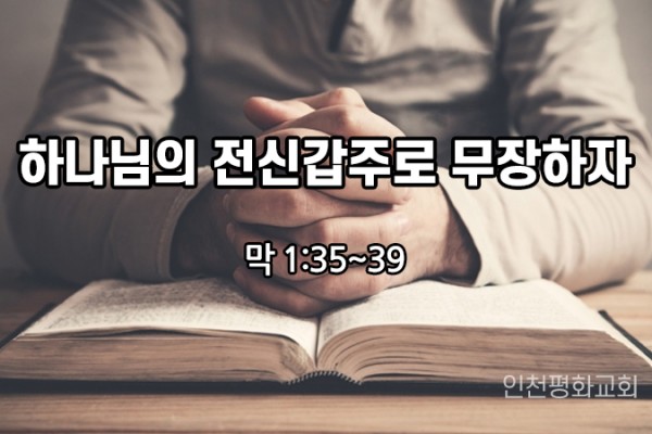 하나님의 전신갑주로 무장하자 (막1:35~39)오늘 본문은 예수님이 받은 사명을 충성되이 이루어가는 모습 보여줍니다.예수님께서 영적으로 무장이 되셔서 사탄의 유혹과 시험을 이겨내셨습니다.군인이 무장이 잘 되어야 잘 싸울수가 있고 사명을 감당해 낼 수 있습니다.할 수 있다는 구호만으로, 승리해야 한다는 다짐만으로는 치열한 전투에서 이기기 어렵습니다.마찬가지로 영적으로 무장이 되어야 하나님이 주신 사명을 유리하게 감당할 수 있습니다.예수님을 알아보는 사람들이 많아졌습니다.유명해지면서 하는 일도 많아지고 바빠졌습니다.시기하고 질투하는 바...