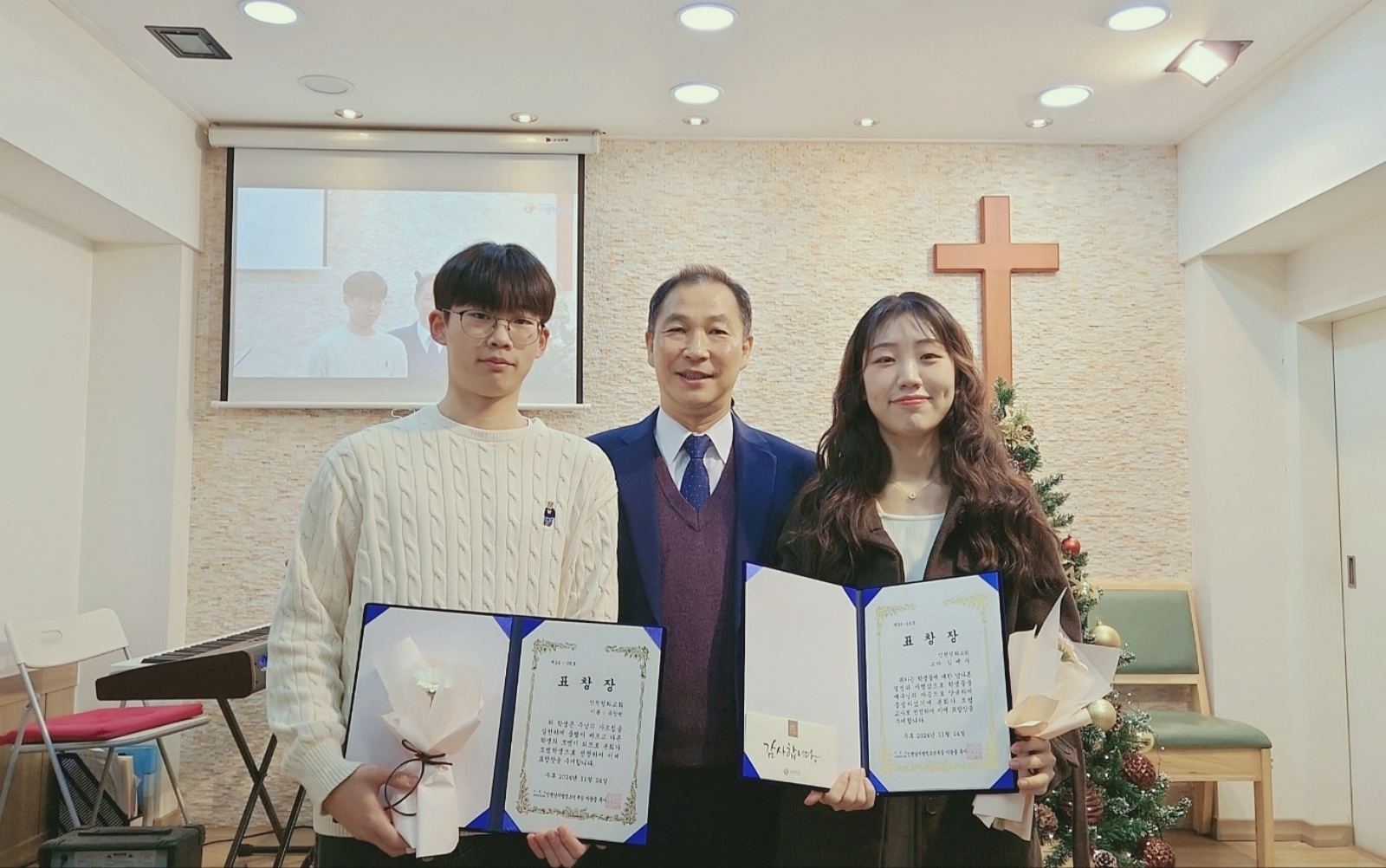 성학 모범교사, 모범학생 시상을 합니다(교사: 김예지, 학생: 유창현) 페이지 정보 작성자인천평화교회 댓글 0건 조회 128회 작성일 24-12-02 14:39 본문 목록 이전글중고등부 교회 앞에서 버스킹 24.12.02 다음글주안지역 목회자목장 모임 24.11.28 댓글목록 댓글목록