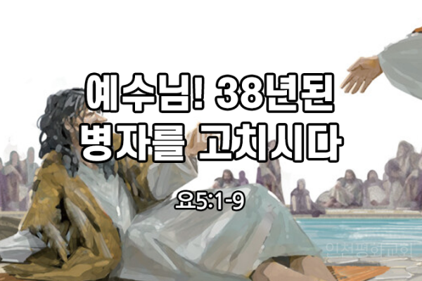 예수님! 38년된 병자를 고치시다 (요5:1-9)12월 주제: 기쁘게 예수님 맞을 준비합시다. 입니다.예루살렘에 가면 양문 곁에 베데스다 라는 연못이 있습니다.그곳에서 38년된 병자를 만나 고쳐주셨습니다.오늘 말씀을 통해1.예수님이 이땅에 오신 이유, 2.예수님이 가지신 권세와 능력을 깨닫고,3.예수님을 사랑하고 예수님을 내 인생의 주님으로 마음열어 기쁘게 영접하는 성도가 되시길 바라며 말씀을 전하겠습니다. 1. 베드자다 연못예루살렘 북동쪽에 지어진 문을 양문이라고 합니다.하나님께 드릴 희생제물로 쓰여질 ...
