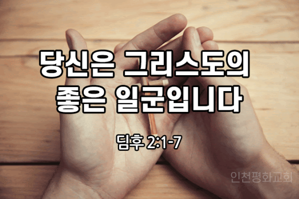 당신은 그리스도의 좋은 일군입니다 (딤후2:1-7)프랑스의 종교개혁가 요한 칼빈은 "인생이란 내게 주어진 사명의 길을 가는 것"이라고 했습니다.난세에 영웅이 난다고 합니다. 교회가 어려움을 당하는 이때 저와 여러분이 사명을 감당할 좋은 일군이 되기를 기원합니다.오늘 성경에서는 좋은 일군이 갖추어야 할 믿음 자세를 가르쳐줍니다.1. 좋은 군사와 같아야 좋은 일군입니다.좋은 군사는 어떤 군사입니까?강한군사가 좋은 군사입니다.강한군사는 전쟁에서, 싸우면 반드시 이기는 군사를 말합니다.기드온의 300용사는 300명으로 1...