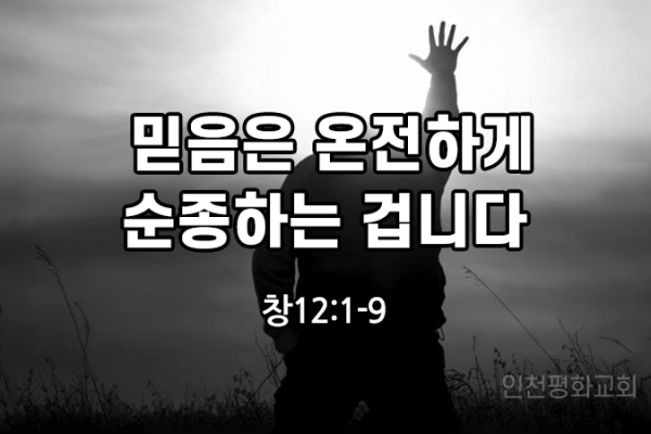 믿음은 온전하게 순종하는 겁니다. (창12:1-9)믿음은 온전하게 순종하는 겁니다 라는 제목으로 말씀 전하겠습니다.종교개혁 1517년 10/31 독일의 신부 마틴 루터에 의해 종교개혁이 시작됩니다.표면적인 이유는 교황의 면죄부 판매에 반대하는 것이지만,본질적으로는 하나님에게로 돌아가자는 겁니다.하나님께로 돌아가자고 할 때 3가지 정신을 회복하고 실천하는 것을 결의합니다.1, 솔라 피데 오직 믿음으로2, 솔라 스크립쳐 오직 성경으로3. 솔라 그라티아 오직 은혜로입니다.기독인들을 믿음의 사람이라고 부릅니다.믿음이란 것이 뭔가?믿음의 조...