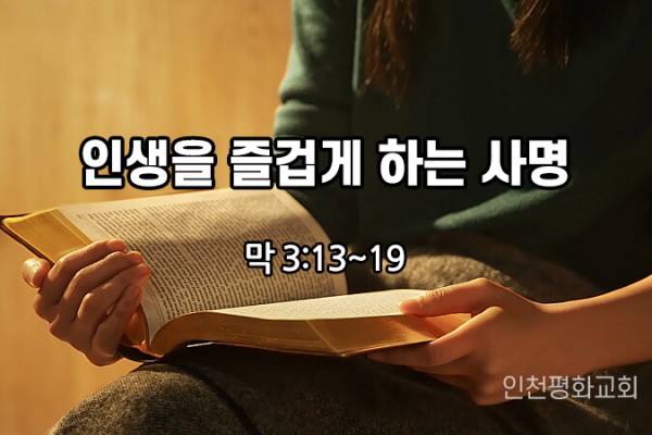 인생을 즐겁게 하는 사명(막3:13~19)9,10월 주제는 ‘받은 사명에 충성하자’입니다.잔치를 할 때는 보통 돼지를 많이 잡습니다.왜 소나 다른 짐승이 아닌 돼지를 잡는가 하는 데는 이유가 있습니다. 소는 밭을 갈아야 하고,개는 집을 지켜야 하는 사명이 있고,닭은 새벽을 깨우는 파숫군 역할을 해야 해서 잡을 수 없다고 합니다.그러나 돼지는 사명이 없기 때문에 잡아도 괜찮아서 잡는다고 합니다. 우리는 다 하나님으로부터 사명을 받은 사람들입니다.사명이란 하나님이 나를 부르시고 꼭 하라고 시키신 일이고,우리...