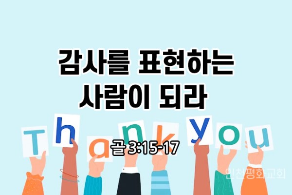 감사를 표현하는 사람이 되라 (골3:15-17) 우리를 향한 하나님의 언어는 명령어로 되어 있습니다. 그래서 하나님의 말씀을 지켜야 하는 계명이라고도 합니다. 항상 기뻐하라, 기뻐해야 되는 것도 명령입니다. 쉬지말고 기도하라, 기도해야 되는 것도 명령입니다. 영과 진리로 예배하라, 예배도 명령입니다. 순종하라, 사랑하라, 용서하라 주 예수를 믿으라! 구원을 받으라! 성령을 받으라! 다 명령하셨습니다. 감사도...