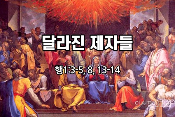 달라진 제자들 (행1:3-5, 8, 13-14)이 땅에서 영원히 살 것 같지만 누구든지 예외 없이 천국이나 지옥으로 갑니다.아무리 호화롭게 살았어도, 죽습니다.고통스러운 고난과 시련을 많이 겪고 있나요, 그것도 끝이 있습니다.예수님이 부활의 첫 열매가 되신 것은 믿는 사람들에게 두 번째 세 번째 부활이 있을 것을 약속하신 겁니다. 오늘 말씀에는 달라진 제자들의 모습과 그렇게 달라진 제자들을 향해 주님께서 주시는 약속이 있습니다.제자들이 어떻게 달라지고, 주님은 제자들에게 어떤 약속을 주셨을까??1. 제자들에게 부활신앙이 들...