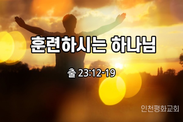 훈련하시는 하나님 (출23:12-19)세상을 바꾸고자 하는 것,남을 변화시키려고 하는 것보다내 자신이 변화되는 것이 훨씬 더 빠르고 좋은 효과를 볼 수가 있습니다.출애굽기 성경은 하나님은 자기 백성을 ‘훈련하신다’ 하는 것을 강조하는 성경입니다.1. 왜 하나님은 훈련하시는 걸까??구원은 하나님이 거저 주시는 은혜로 얻을 수 있지만,하나님의 자녀로 사는 믿음으로 사는 삶을 살기 위해서는 많은 연습, 훈련이 필요하기 때문입니다.훈련은 하나님 말씀을 가르쳐 지키게 하는 겁니다.말씀을 교육시키고 몸에 베이도록 반복하여 실천하는 것입니다.3...