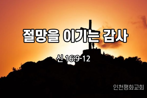 절망을 이기는 감사 (신16:9-12)오늘은 교회 절기, 명절인 맥추감사절입니다.하나님께서 이스라엘을 구원하시면서 3대 절기를 제정하시고 절기를 꼭 지키라고 하셨습니다.주일예배, 또 절기를 주신 목적은 우리가 구원받은 하나님의 자녀라는 것을 알게 하시고 우리에게 구원을 베푸시고 각종 축복과 은혜를 베푸신 하나님을 기억하고 감사를 일깨워주는데 있습니다,>>>>>>>>>>>>>>>>>>>>>>맥추절을 칠칠절, ...