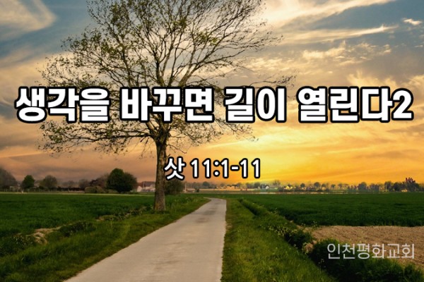 생각을 바꾸면 길이 열린다 (삿11:1-11)하나님의 생각과 사람의 생각은 큰 차이가 있다고 했습니다.생각은 보이지 않지만, 강력한 파워가 있습니다.생각은 행동 유발자입니다.인풋이 생각이고, 아웃풋이 행동입니다.이스라엘 백성들이 큰 위기를 맞게 되었습니다. 블레셋과, 암몬이 연합하여 동시에 침공해 왔습니다. 이스라엘은 한나라의 공격도 막아내기 버거운 상태입니다.그런데 이렇게 위기에서 기가 막힌 용병술로 대승리를 거두게 됩니다.위기를 만난 이스라엘처럼 오늘 우리도 감당해내기 어려운 상황속에 살아갑니다.하나도 벅찬데,...